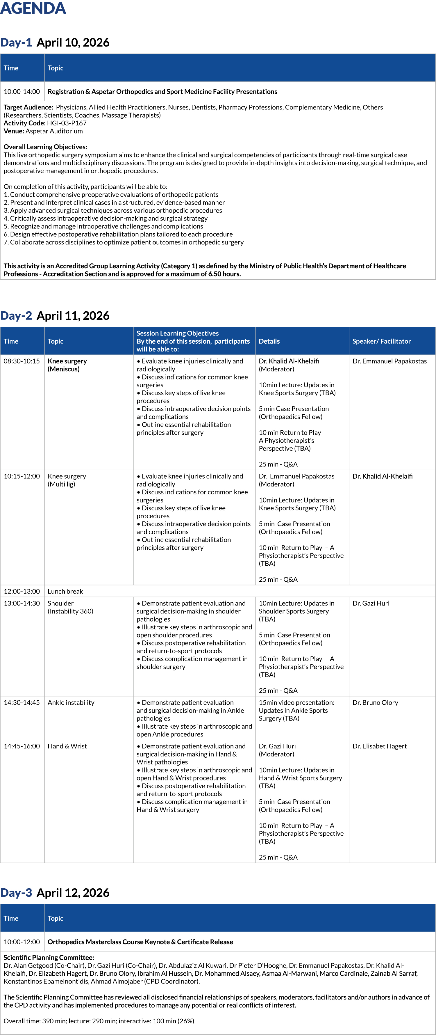 ASPETAR ORTHOPEDIC MASTERCLASS: